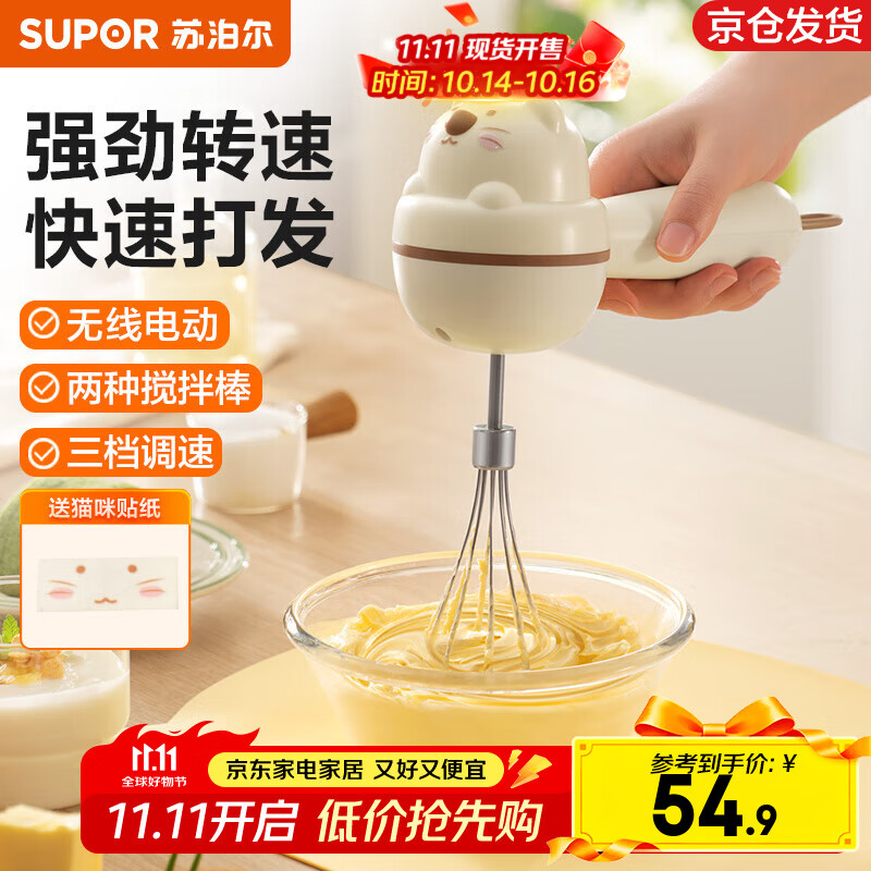 苏泊尔(SUPOR)打蛋器无线搅拌打蛋机烘焙手持自动搅蛋工具电动迷你奶油打发器 三档调速 含充电线+贴纸¥74.9京东价:¥74.9京东配送立即抢购