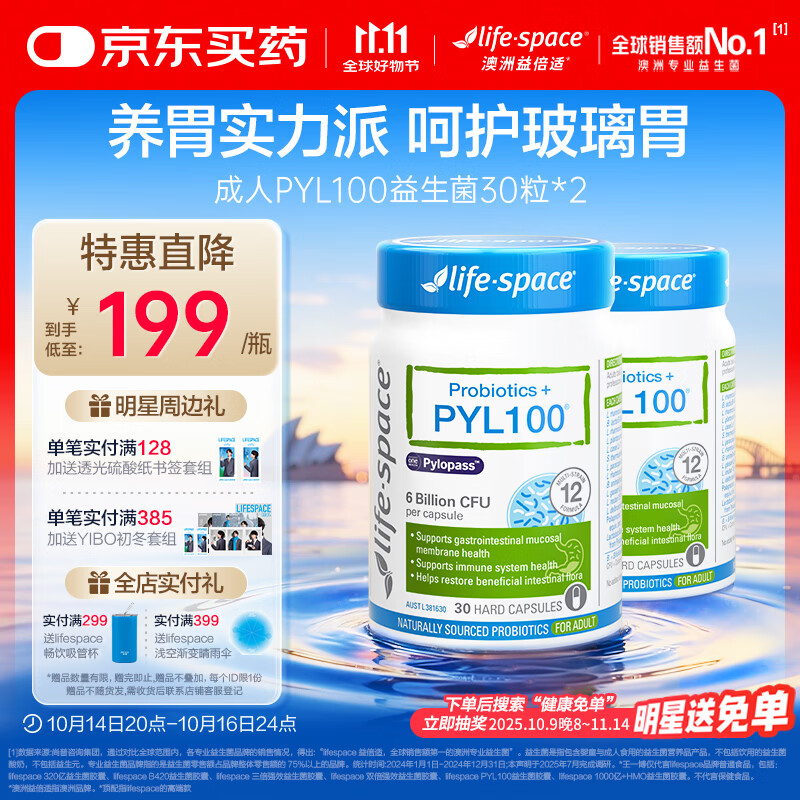 自营Life Space成人PYL100养胃益生菌30粒/瓶*2瓶装澳洲进口含罗伊氏乳杆菌¥448京东价:¥448京东配送立即抢购