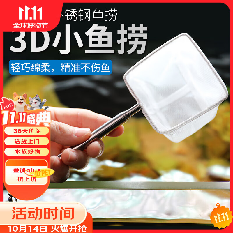 自营派乐特鱼缸鱼捞网网捞鱼小号3d渔捞网兜密网手抄鱼网热带观赏鱼可伸缩¥12.8京东价:¥12.8京东配送立即抢购