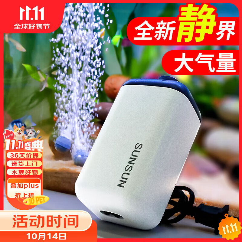 自营森森鱼缸增氧泵水族箱氧气泵LQE-50家用小型充氧泵3W单孔+全套配件¥19京东价:¥19京东配送立即抢购