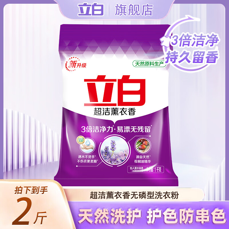 立白洗衣粉超洁薰衣香无磷型洗衣粉大袋家用1kg 3倍洁净力¥9.9京东价:¥9.9历史最低价立即抢购