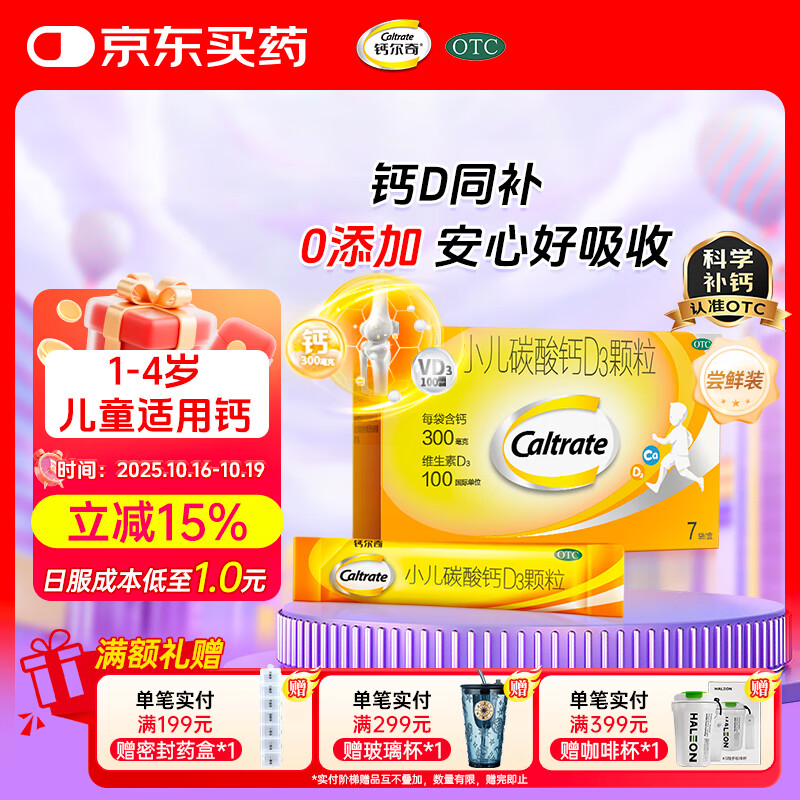 自营钙尔奇小儿碳酸钙D3颗粒7袋 OTC儿童补充钙冲剂含维生素d3青少年1-4岁成长期补钙¥9.36京东价:¥9.36历史最低价立即抢购