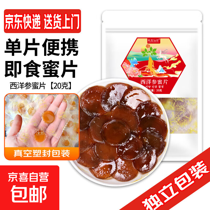 西洋参蜜片 长白山即食蜜片花旗参泡蜂蜜鲜参蜜片 西洋参蜜片 20克¥15.1京东价:¥15.1历史最低价立即抢购