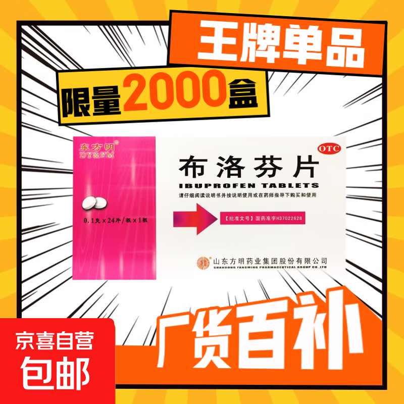 东药 布洛芬片0.1g*24片缓解疼痛感冒发热肌肉关节痛牙痛痛经头痛 1盒¥12.1京东价:¥12.1历史最低价立即抢购