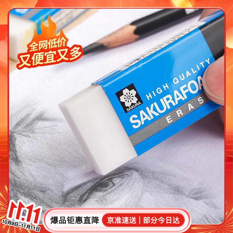自营樱花(SAKURA)日本橡皮擦 学生考试学生文具美术素描绘图专用 XRFW-60小号单块 日本进口¥3.39京东价:¥3.2历史最低价立即抢购