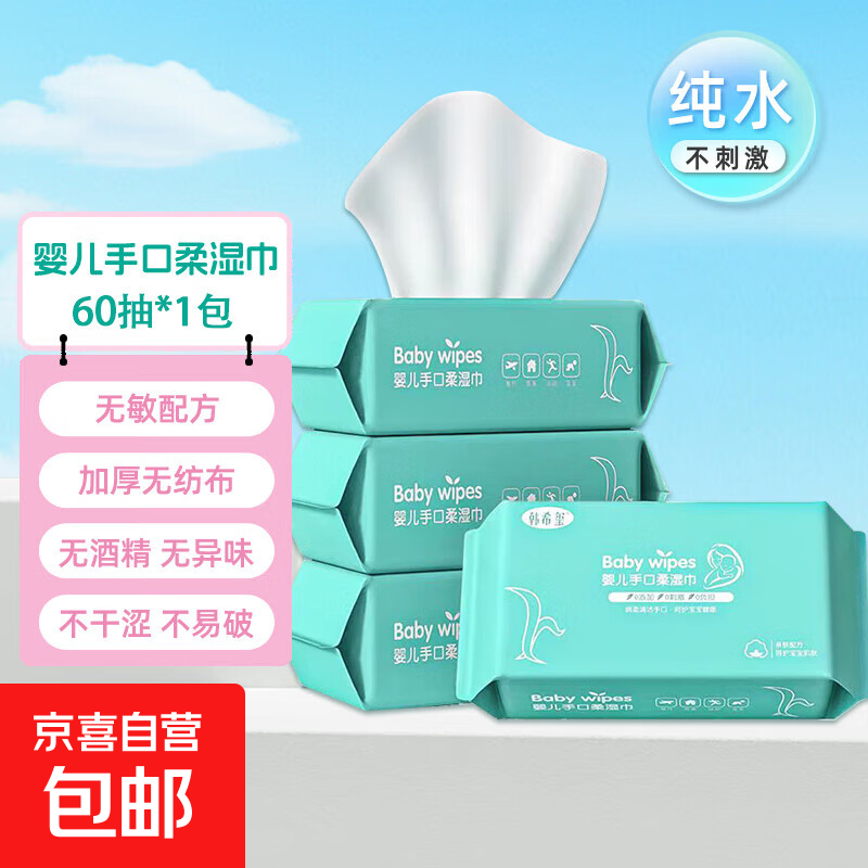 纯水湿巾EDI纯净水加厚通用洁净婴儿湿巾 婴儿湿巾加大加厚款 湿巾【1包】60抽¥4.99京东价:¥4.99京喜秒杀立即抢购