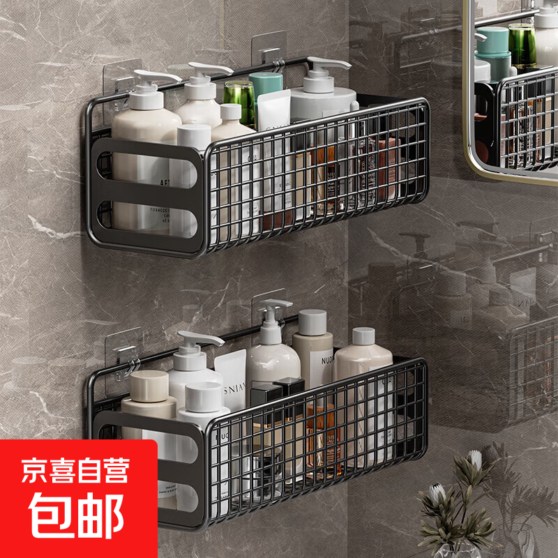 卫生间墙上壁挂式收纳架免打孔厕所洗澡洗手间洗漱台浴室置物架 置物铁架1个装+2个挂钩¥7.92京东价:¥7.92京喜秒杀立即抢购