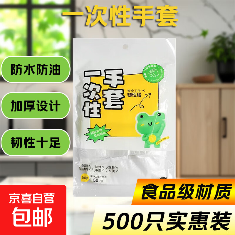 加厚一次性手套袋装食品级餐饮塑料手套透明烧烤PE手套 囤货 500只¥6.99京东价:¥6.99京喜秒杀立即抢购