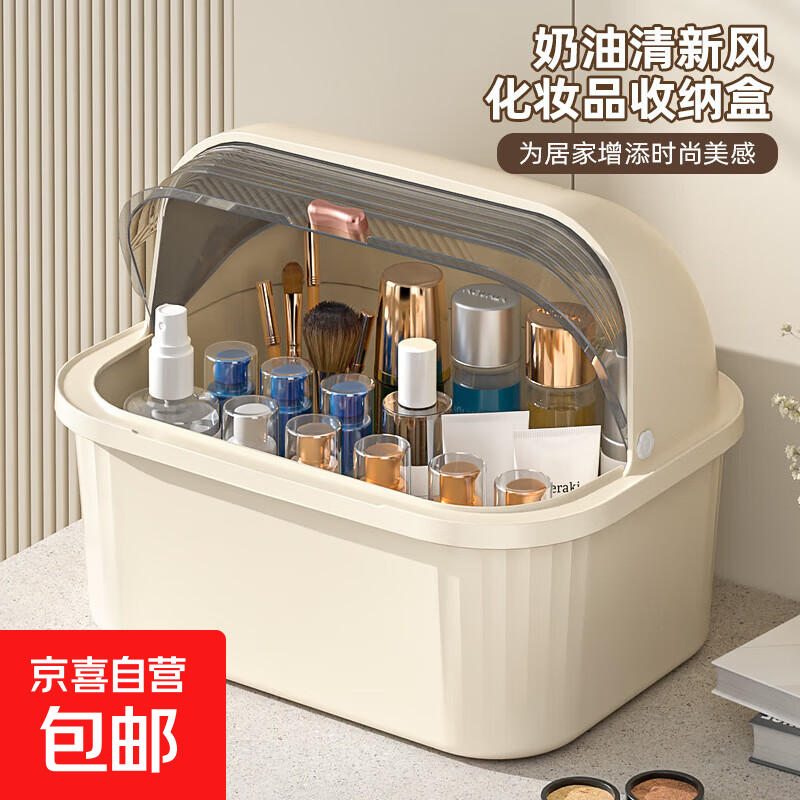 京东物流 大容量化妆品收纳盒桌面防尘护肤品收纳箱半翻盖储物盒 奶油色小号 35*26*26cm 1个¥19.9京东价:¥19.9京喜秒杀立即抢购