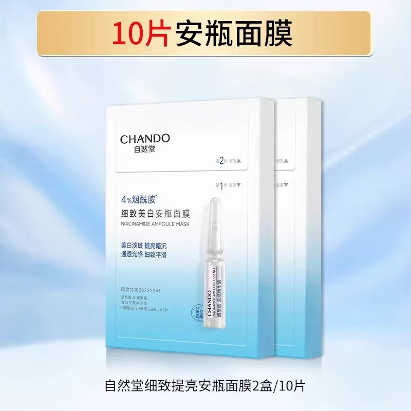 自然堂(CHANDO)安瓶面膜 烟酰胺补水保湿美白弹嫩细致舒缓肌肤面膜套装护肤品女 安瓶面膜10片【美白淡斑】¥41.95京东价:¥41.95高收益榜立即抢购