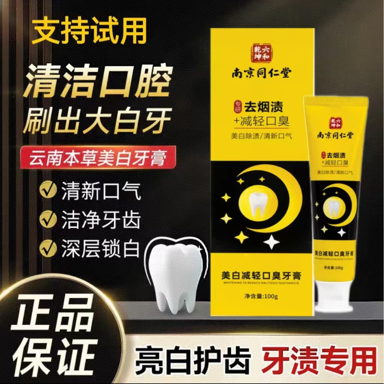 六和乾坤去烟渍牙膏美白牙膏去黄清新口气 南京同仁堂去烟渍牙膏 南京同仁堂去烟渍牙膏2支¥9.88京东价:¥9.88高收益榜立即抢购