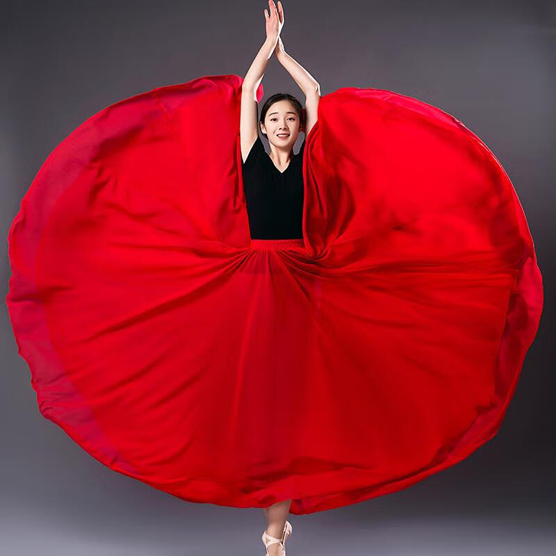 南啵丸古典舞蹈服女飘逸720度大摆裙新疆舞灯火里的中国万疆舞蹈演出服 中国红色 M 360度裙摆裙长85c(推荐155159)