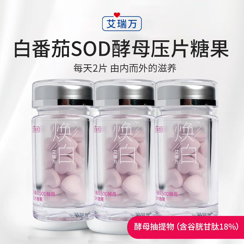 艾瑞万白番茄SOD酵母压片糖果谷胱甘肽L-半胱氨酸含SOD酵母粉内服 1月量2瓶(30粒/瓶)无线¥209.91条评论返2.1%券30-10领券购买复制推广