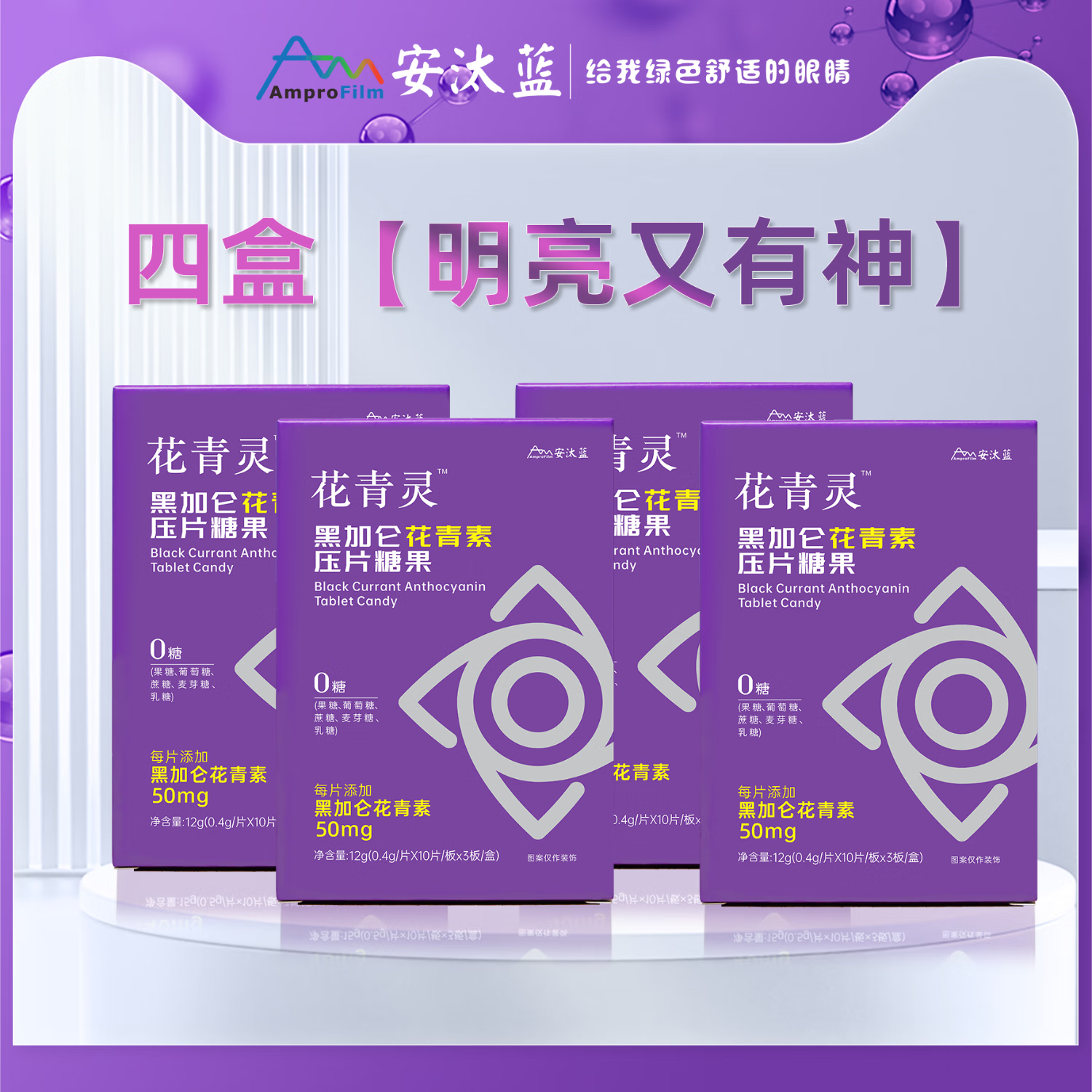 安汰蓝花青灵黑加仑花青素高含量0糖快速缓解眼疲劳 近视干眼人群 4盒明亮又有神