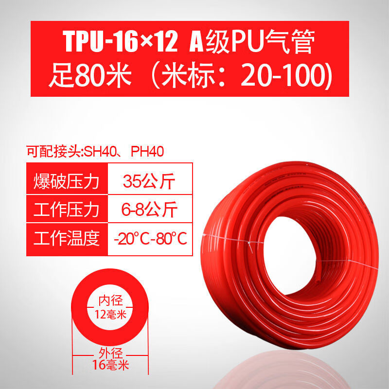 PU气管软管足80米100米空压机气泵木工管气动高压风管8mm10mm12mm 16*12红色100米无线¥292.050条评论返0.7%券199-12领券购买复制推广