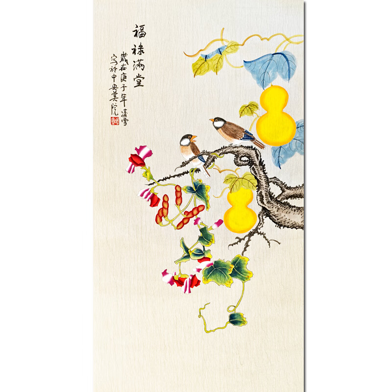 名人字画中央美院教授凌雪纯手绘真迹花鸟工笔画国画水墨画书画装饰画油画 凌雪《福禄满堂》办公室花鸟装饰画艺术品拍卖收藏版画 46X46CM