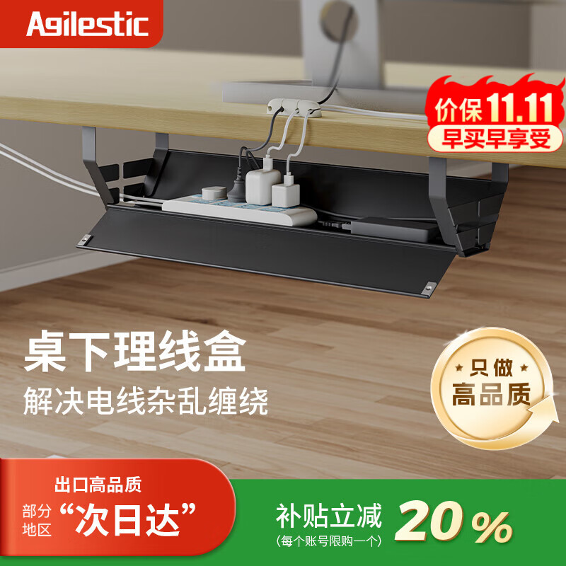 AGILESTIC桌下理线架理线器槽盒插排路由器收纳架桌面数据线电线置物架 酷黑 【45cm通用款】桌下理线盒无线¥118200条评论返5.6%券88-12领券购买复制推广