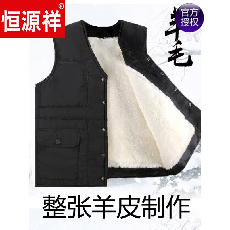 恒源祥冬季羊毛马甲中老年皮毛一体坎肩真羊皮马夹男保暖加绒加厚棉背心 羊毛可拆卸内胆 3XL建议135-155斤拼购¥188京东价:¥191返5.6%券1-0.36领券购买复制推广