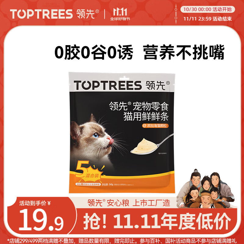 自营领先猫咪零食猫条湿粮罐头0胶0谷0诱混合口味12g*20条拼购¥9.9京东价:¥20返7%拼团购买复制推广