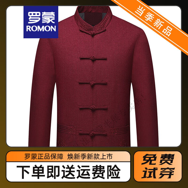 罗蒙(ROMON)唐装男中老年父母装春秋情侣装夹克外套老人生日婚宴冬装棉衣保暖 男士酒红色春秋上衣 3XL 190男款175-190斤拼购¥450京东价:¥500返4.2%券40-0.88领券购买复制推广