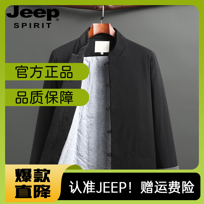 JEEP SPIRIT盘扣唐装男士棉麻复古加厚冬装外套装中式汉服中国风装舒适百搭 黑色【上衣】 M (170) 100-120斤拼购¥449京东价:¥499返3.5%券40-0.75领券购买复制推广