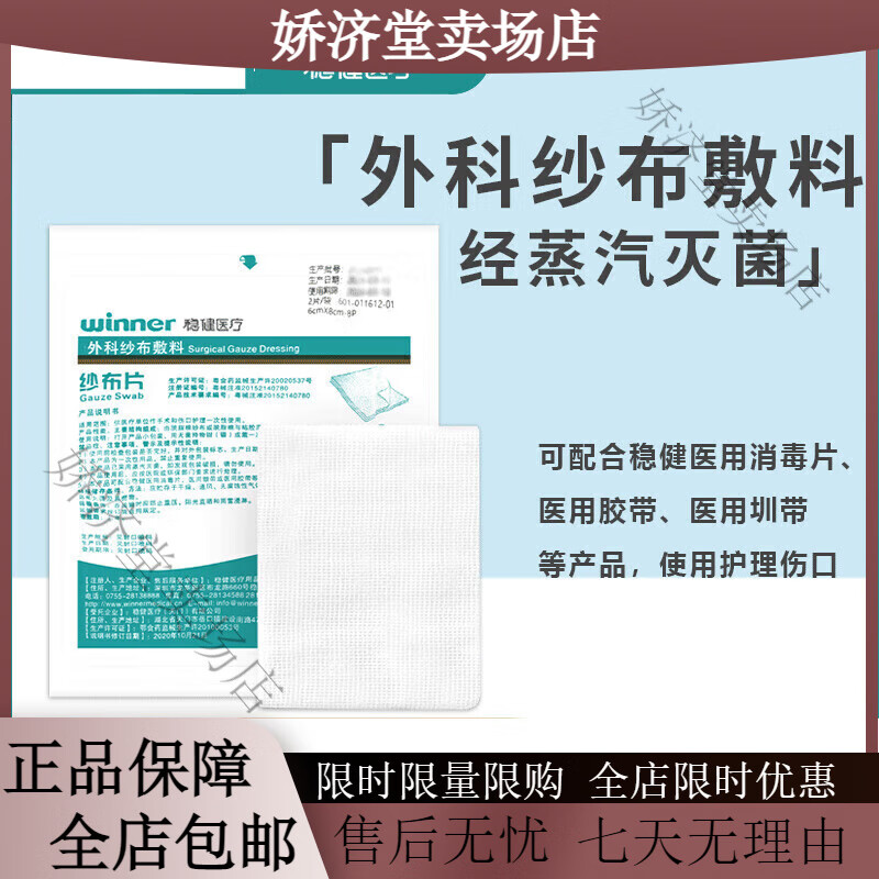 稳健(Winner)(Winner)医用纱布片 无菌级处理棉纱布 伤口包扎清洁护理 外科脱 6cm8cm8p 2片/袋 1袋无线¥4.40条评论返3.5%券4-3领券购买复制推广