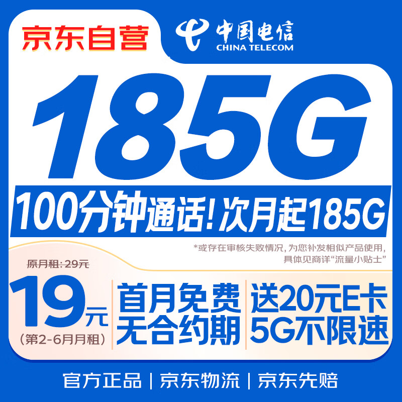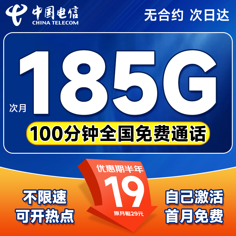 中国电信流量卡电信流量卡电话卡手机卡纯上网大流量卡5G不限速大王卡低月租超大流量 爆款卡=185G全国流量+首月免费无线¥0.011000条评论返56%直达链接复制推广