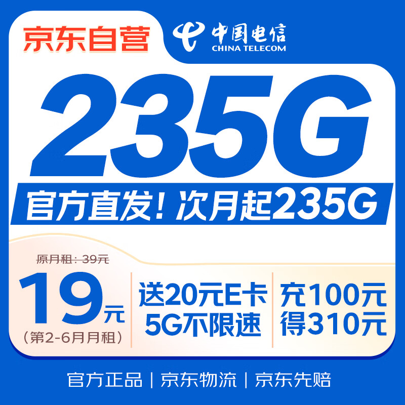 自营中国电信大流量卡19元【235G流量】全国通用手机卡移动电话长期纯上网非终身无限永久无线¥0.01100000条评论返56%直达链接复制推广