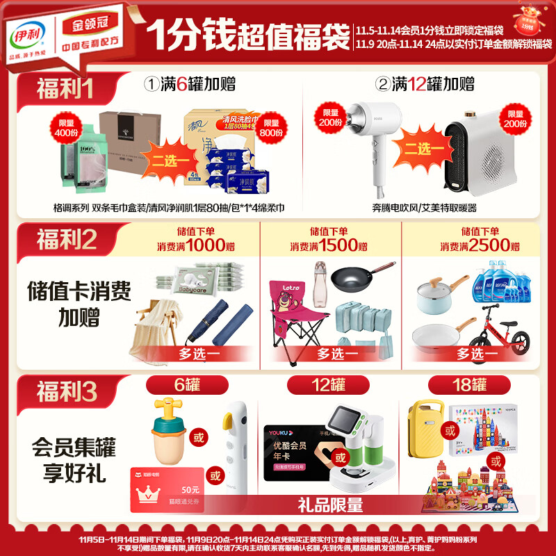 伊利金领冠1分钱超级福袋【先加会员再下单】详询客服不支持退换