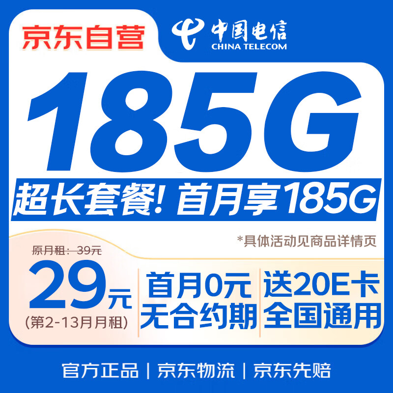 中国电信流量卡29元185G【超长套餐】全国通用手机电话卡低月租5G纯上网星卡非终身