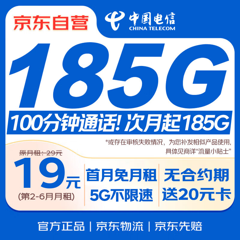 自营中国电信流量卡29元185G【超长套餐】全国通用手机电话卡低月租5G纯上网星卡非终身无线¥0.0120000条评论返56%直达链接复制推广