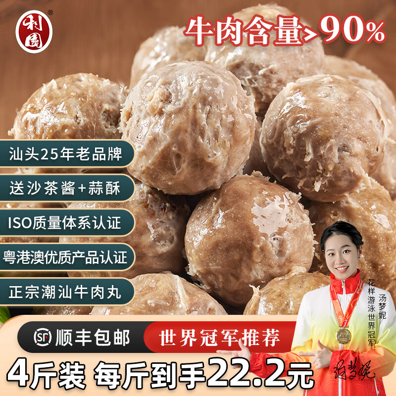 利园 潮汕正宗牛肉丸+手打牛筋丸 4斤 券后64元