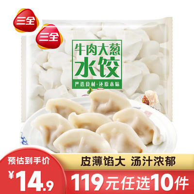 三全经典升级灌汤水饺450g装,售价14.9,参与119选10件活动,使用99-30优惠券,并使用119-30优惠券,到手59元10件,折6.5元一斤。