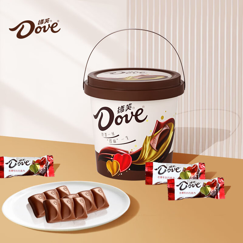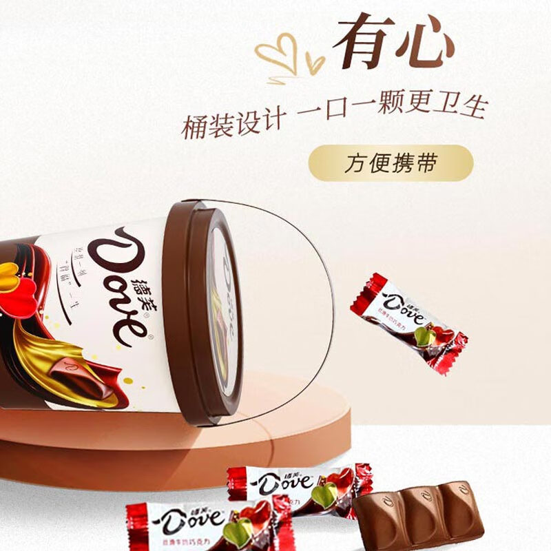 Dove 德芙 巧克力盒装婚庆喜糖果零食520情人节送女友母亲节礼物浪漫告白 德芙丝滑牛奶4.5g*60粒 桶装 270g 券后29.9元
