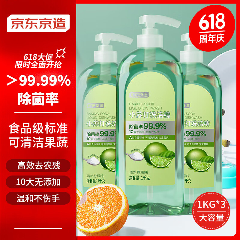 京东京造 小苏打洗洁精 1kg*3瓶 券后28.41元