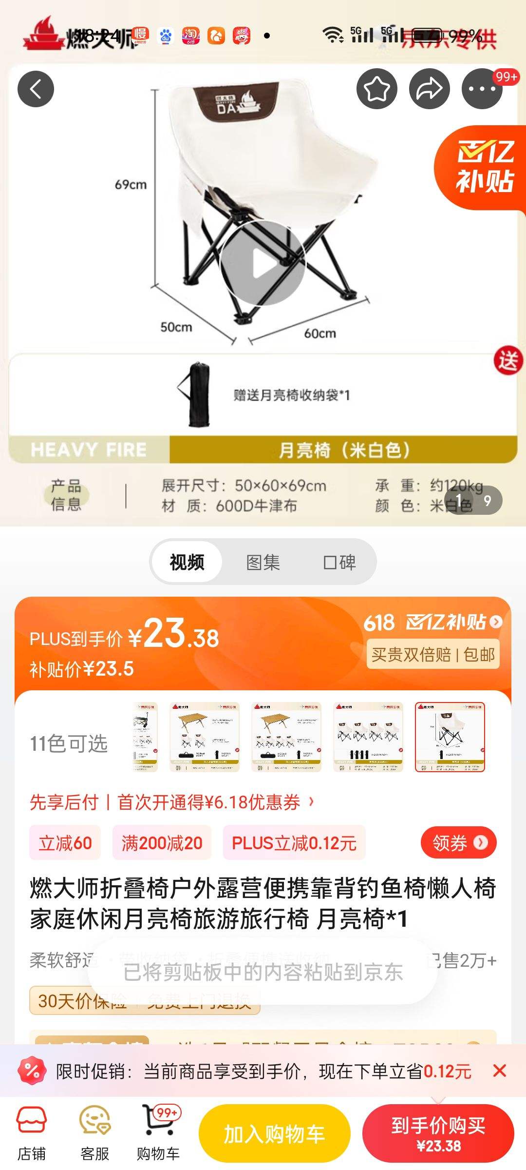 plus会员、京东百亿补贴:燃大师折叠椅户外露营月亮椅*1 23.38元包邮