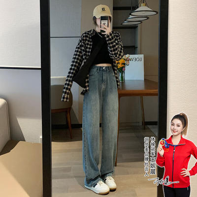 限移动端、京东百亿补贴:翊尚美 阔腿牛仔裤女高腰宽松直筒裤子女复古显瘦裤子 券后47.16元