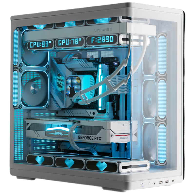 360水冷位 ATX主板 一体弧面玻璃 左右分仓海景房
