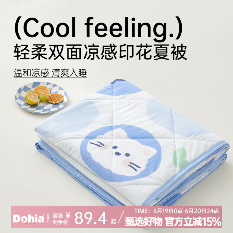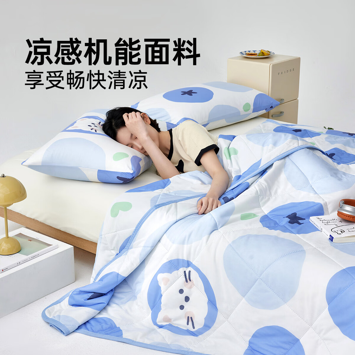 多喜爱 家纺双面凉感夏被单双人夏凉被可水洗空调被子 双面凉感-阿呜蓝莓 152*218cm 券后59.4元